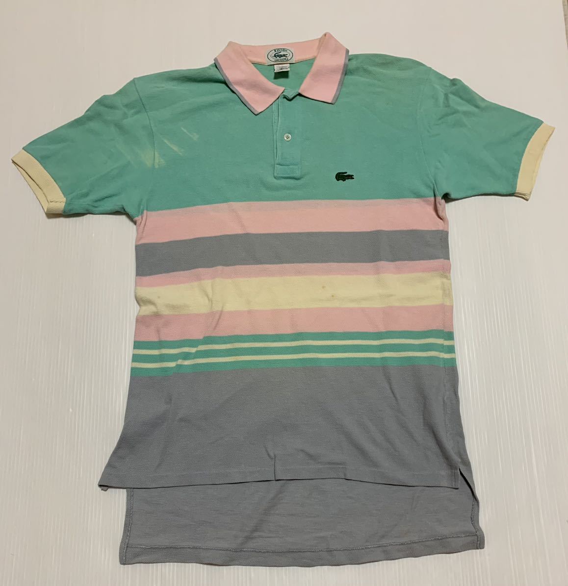 > 【USA製 サイズM 好配色】80s 90s IZOD LACOSTE アイゾッド ラコステ 半袖 ストライプ ポロシャツ 鹿の子 フレラコ メンズ ビンテージ