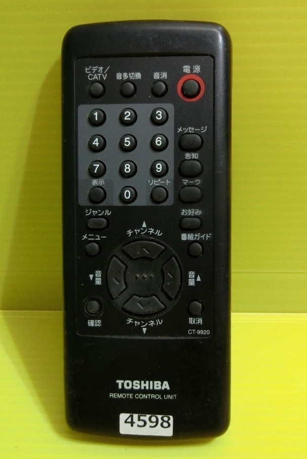 - ■即発送!AU-4598■ TOSHIBA ビデオ/CATV リモコン CT-9920■動作品 保証付