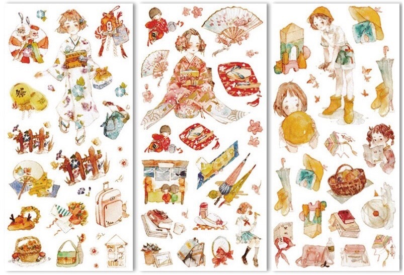 - ◆海外ステッカー シール No1-3 女の子・和風・着物など 手帳・日記・ジャンクジャーナル・コラージュに