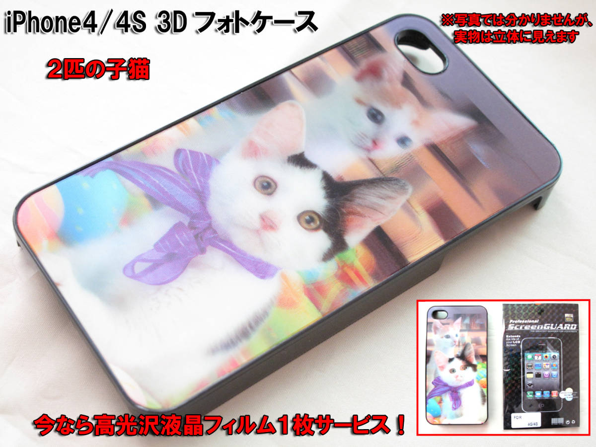 - 【iPhone 4 4S 3D 立体 薄型ケース】 2匹の 子猫 かわいい にゃんこ 液晶保護 フィルムサービス 飛び出す 立体画像 薄型ケース カバー n2it