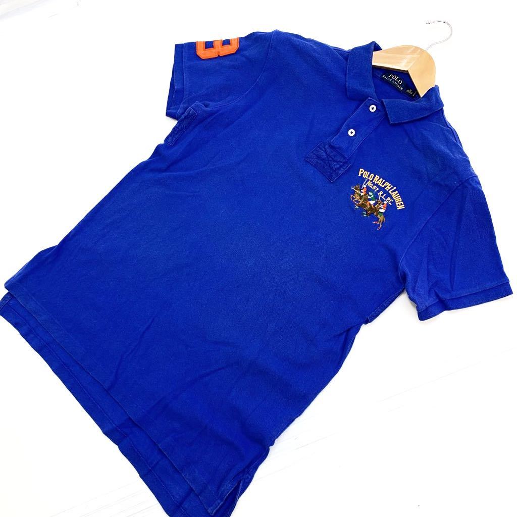 > ポロ ラルフローレン POLO RALPH LAUREN 半袖 ポロシャツ Mサイズ 爽やかブルー 細身 好シルエット 胸ポロ刺繍♪ アメカジに■FA75