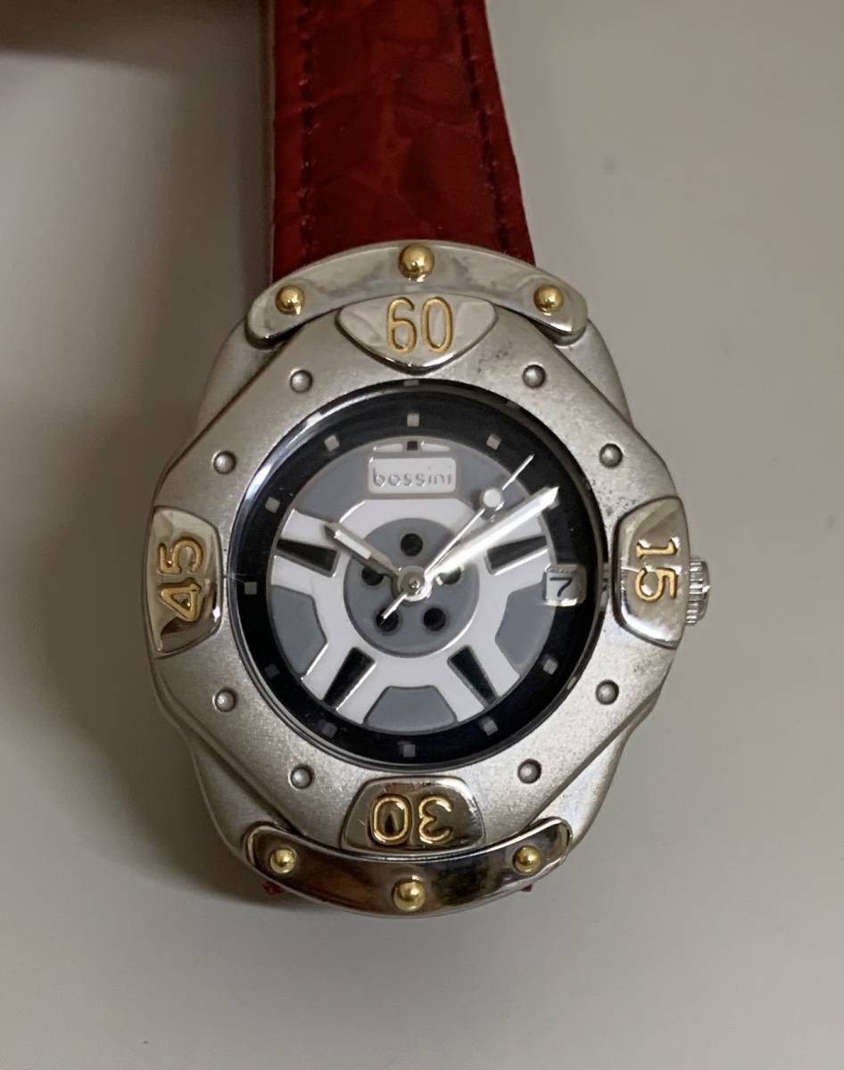 - 【訳あり商品】型押しレザーベルトレディースウォッチRD/GY