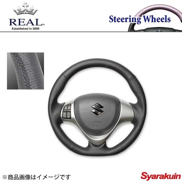 > REAL レアル ステアリング MAZDA/マツダ スクラムワゴン DG17W オリジナルシリーズ ガングリップ オールレザー ブラック ユーロステッチ