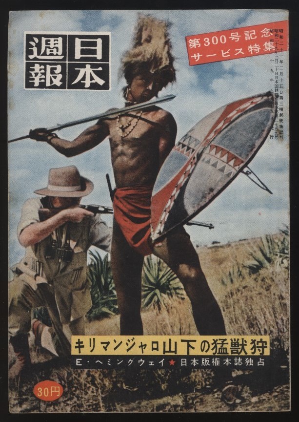 - 「日本週報」 グラビア キリマンジャロ山下の猛獣狩 「野獣の宝庫ケニヤを行く」アーネストヘミングウェイ日本版権本誌独占 昭和29年