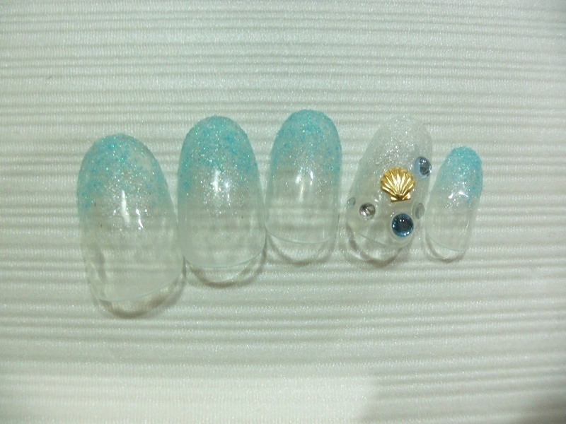 - (定型外orクリックポスト発送込み) ラメグラデーションで涼しくネイルチップ ジェル使用作品