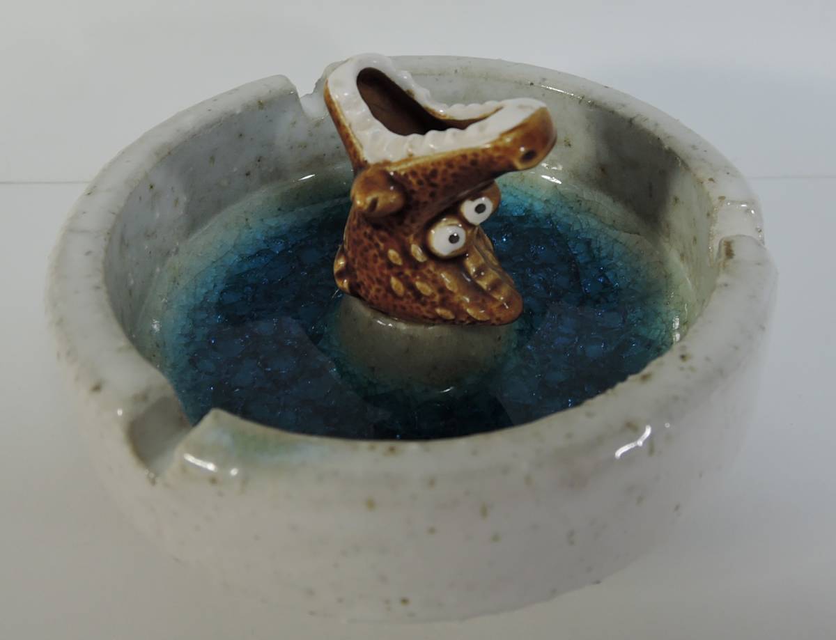 - ☆Y06 昭和レトロ■ワニ 灰皿 陶器製■ワニの口に水を入れてタバコの火を消す? 未使用