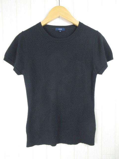 - ロペ ROPE ニット ニットソー クルーネック 半袖 ブラック M 秋冬