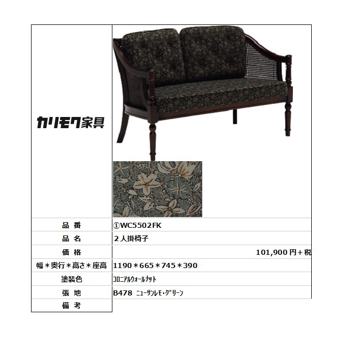 - 【カリモク家具・人気商品】★2人掛椅子WC5502FK