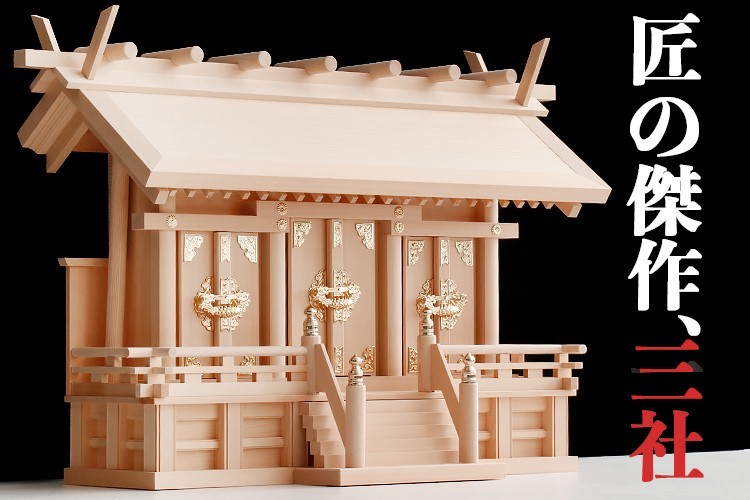 - 匠造り ■ 職人が仕上げる 極上 木曽桧の神棚 ■ 板葺き厚屋根 傑作三社 通し屋根 ■ 中 ■ 神棚 単品