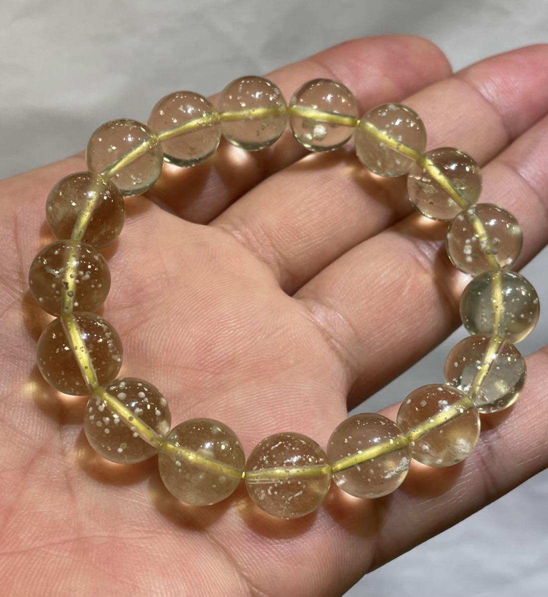 - プレミアム!最高グレード!宝石質リビアングラスブレスレット クリストバライト入り 鑑別書付き
