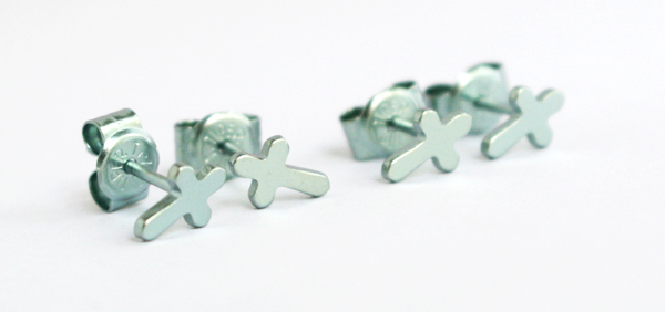 - 国産純チタン クロス型 ピアス(ライトブルー)2セット組