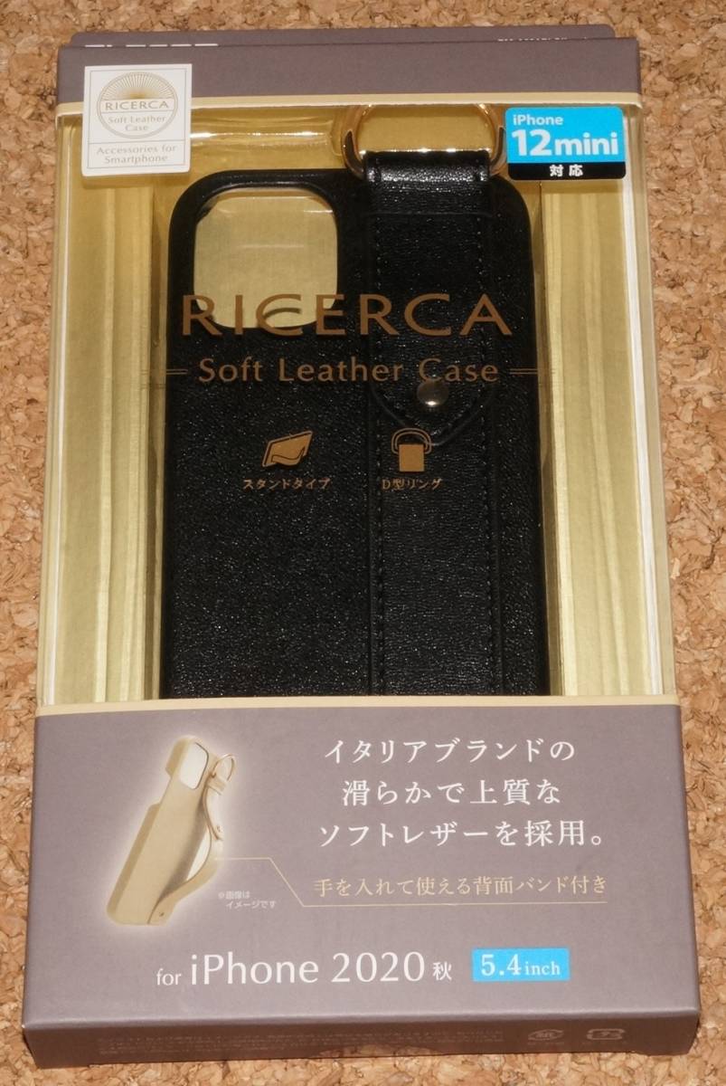 > ★新品★ELECOM iPhone12mini レザーケース オープン 落下防止バンド付き ネロ