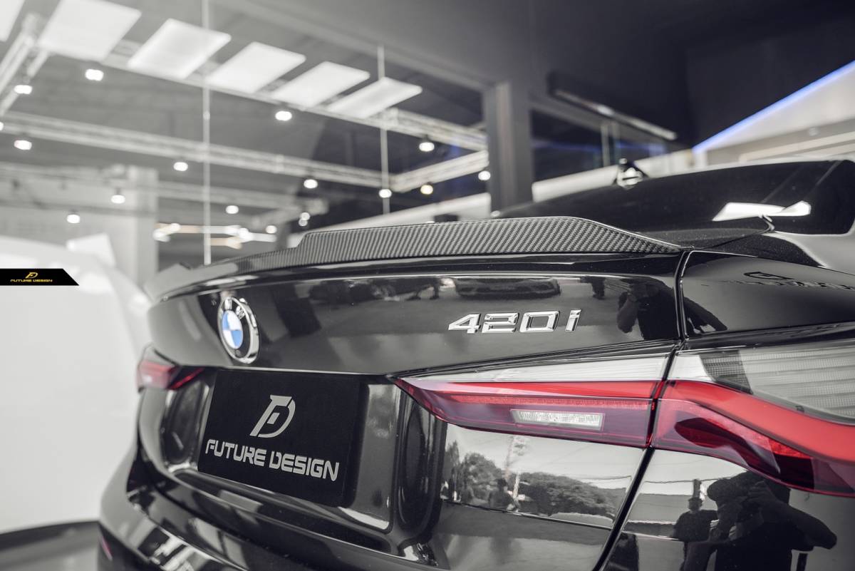> 【FUTURE DESIGN 正規品】BMW 4シリーズ G22 トランク用 リアスポイラー 本物DryCarbon ドライカーボン カスタム エアロ パフォーマンス