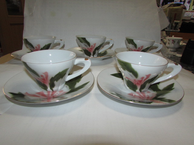 - 1000円値引き(旧家・蔵出し)(古いレトロな花模様・カップ・ソーサ・5客)orion CHINA貴重・珍品