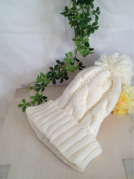 - ★A.K★大きめボンボンが可愛い縄編みニット帽★