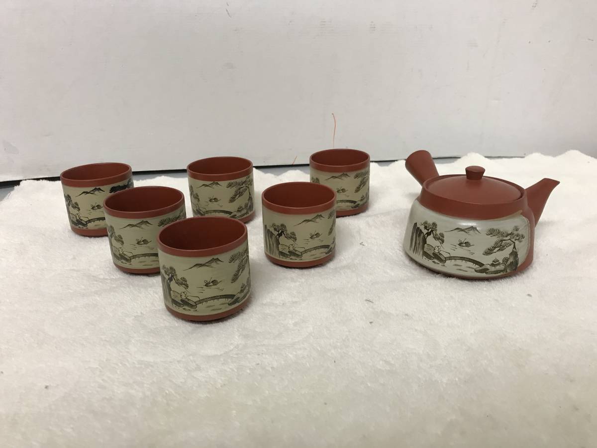 - レトロ 和柄 急須 KYUUSU 1個 湯呑 YUNOMI 6個 合計7個 セット まとめて お茶