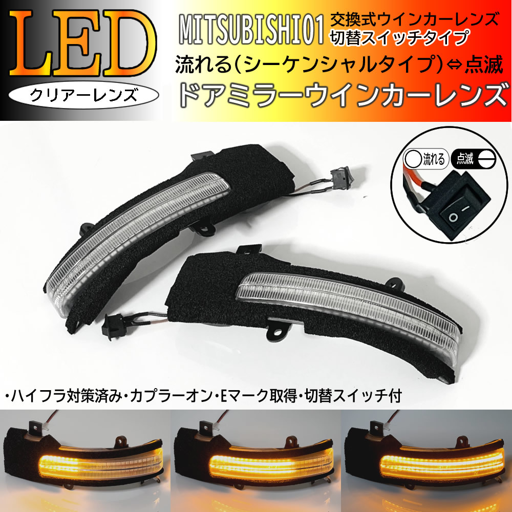 > 01 三菱 切替 流れる ⇔ 点滅 LED ウインカー ミラー レンズ クリア ドアミラー シーケンシャル ekクロス スペース B34W B35W B37W B38W