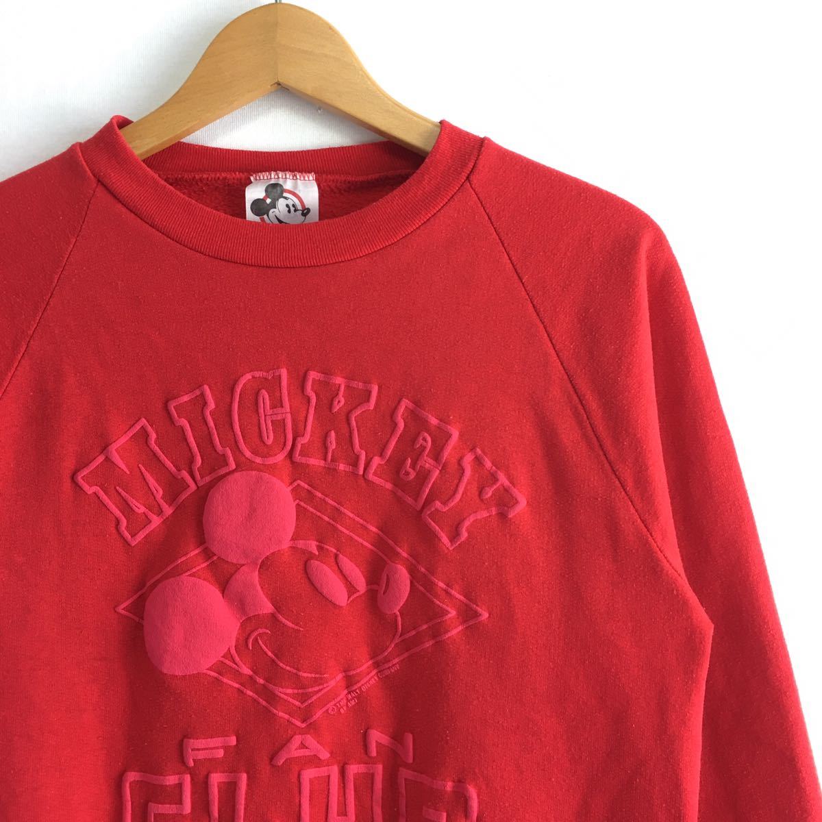 > ビンテージ 90s【MICKEY MOUSE】同色 発砲プリント スウェット USA製 メンズ S ミッキーマウス ビンスエ 古着 アメカジ キッズ チビ Y2K