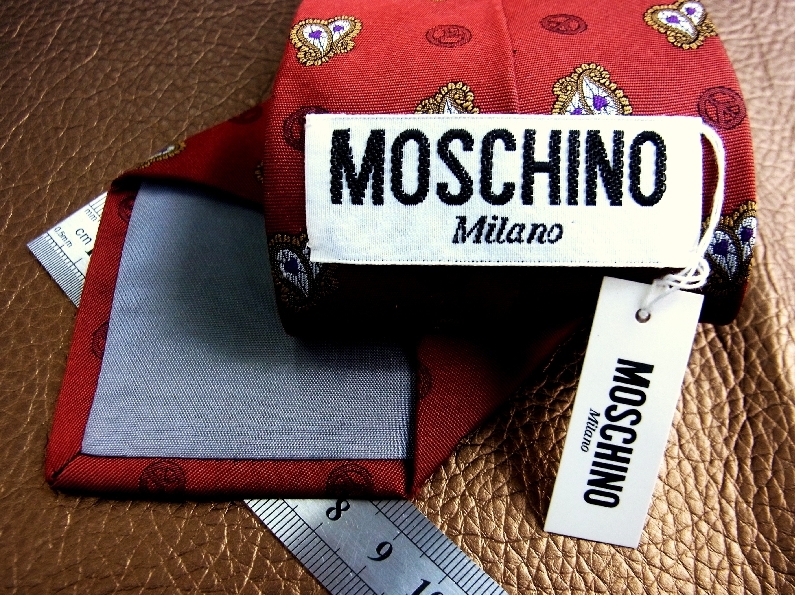 - №R2313♪良品 ♪モスキーノ【ロゴ&ハート・ペイズリー】ネクタイ