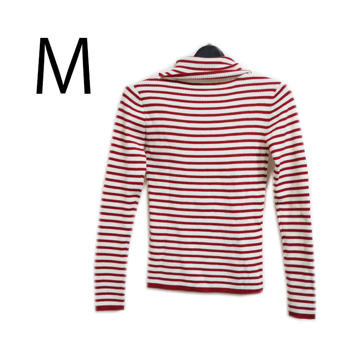 - ●新品/タートルネックニット/M/リブ/赤系/ボーダー/カジュアル/レディース●f7797