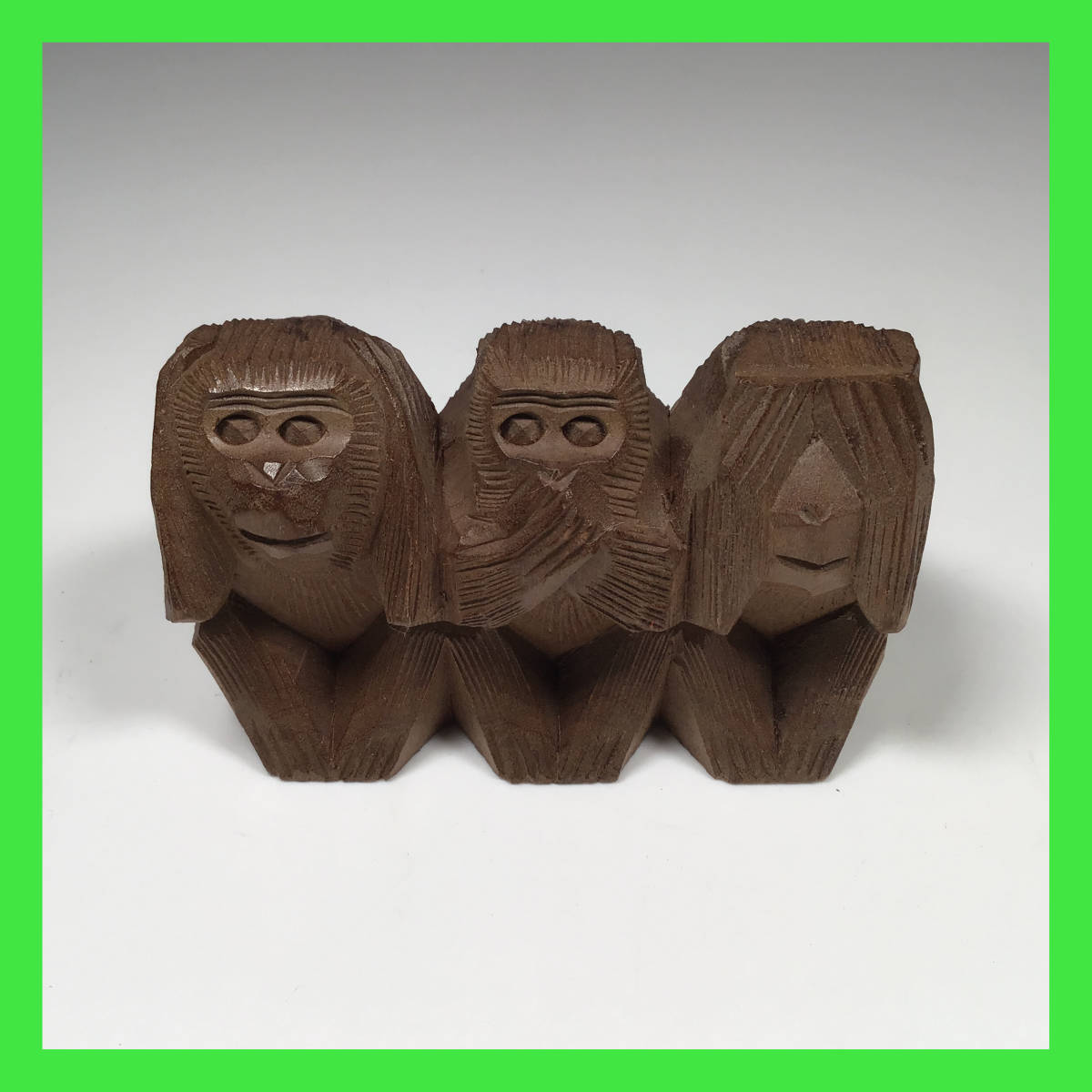 - A-111☆ 木彫りの置物 サル 猿 見ざる聞かざる言わざる アンティーク 工芸品 民芸品 骨董品