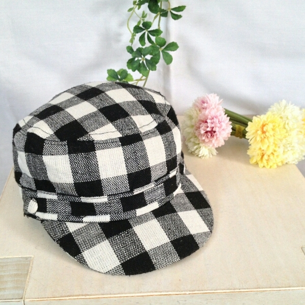 - ◆黒×白◆ブロックチェックのワークキャップ◆小学生サイズ◆