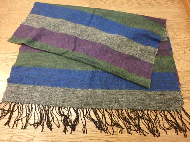 - n109k ストール 約180×72cm ボーダー 防寒 古着 中古 マフラー レディース