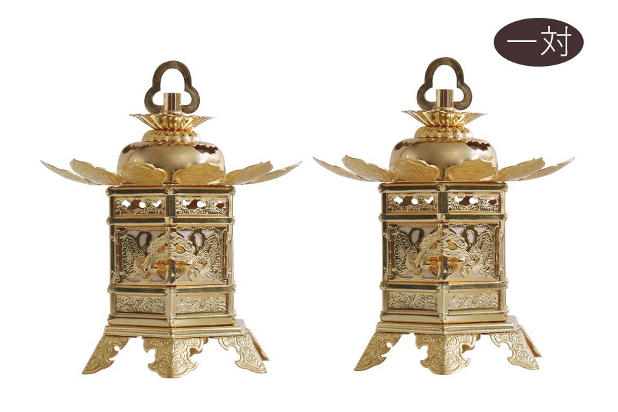 - 灯ろう 照明 仏壇 真鍮 吊り 燈篭 神前灯籠 東 大谷派 蝶足 ■ 大 ■ 金色 仏具 一対
