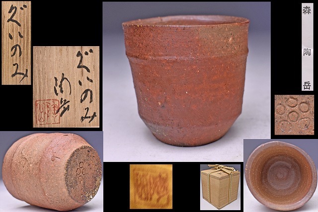 > 森陶岳 ★ 備前 ぐい呑 ★ 共箱 共布 栞 ★ 土味良く希少な轆轤作品 ★ 検 森一洋 渡辺聡 星正幸 吉田浩一
