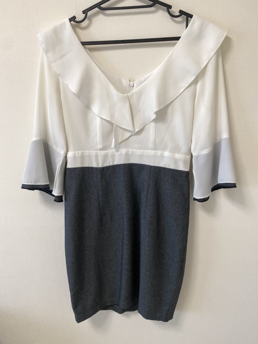 - 白×グレー ミニワンピース ミニスカートワンピース S