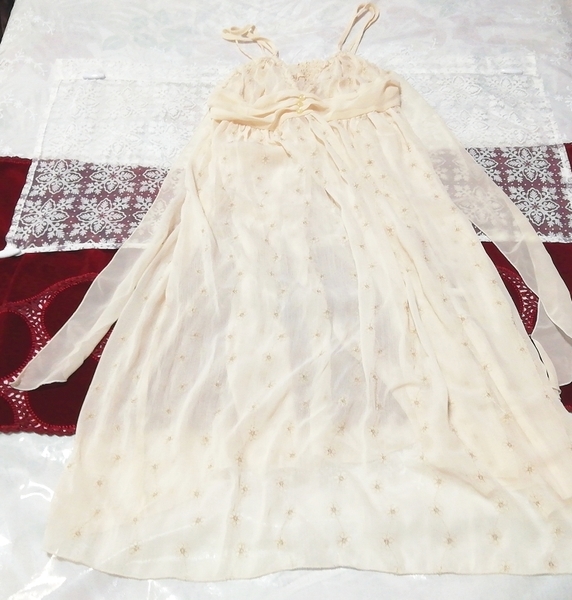 > 亜麻色花刺繍シースルーシフォンネグリジェキャミソールワンピース Flax flower embroidery see-through chiffon negligee camisole dress