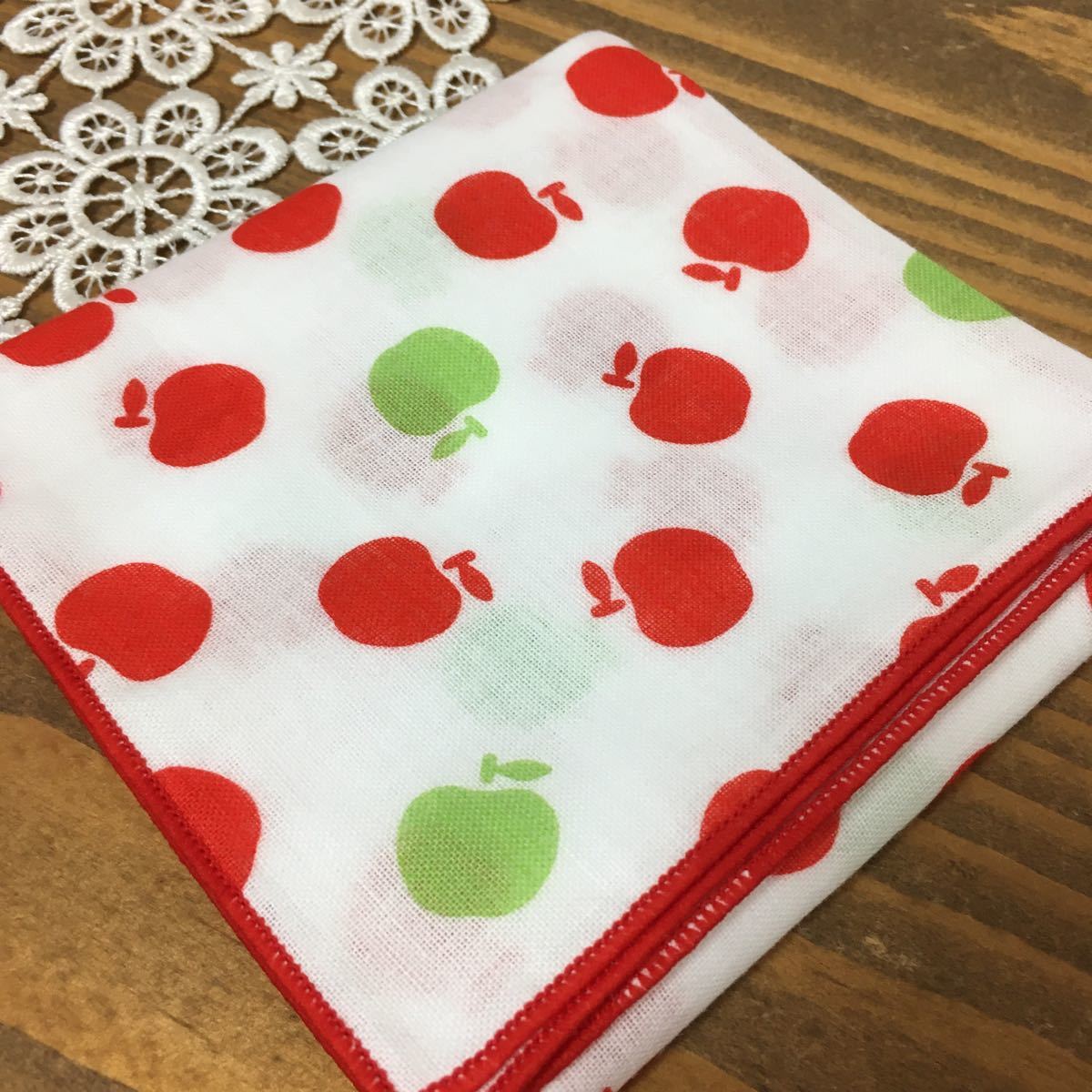 - やわらかハンカチ 送料140 日本製 綿100% ガーゼ ハンカチ 新品 35cm りんご