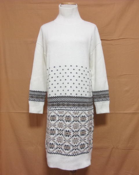 - 新品★自由区★洗える フェアアイル柄 ニットワンピース★5号32★アンゴラ★小さいサイズ★ホワイト白★ハイネック