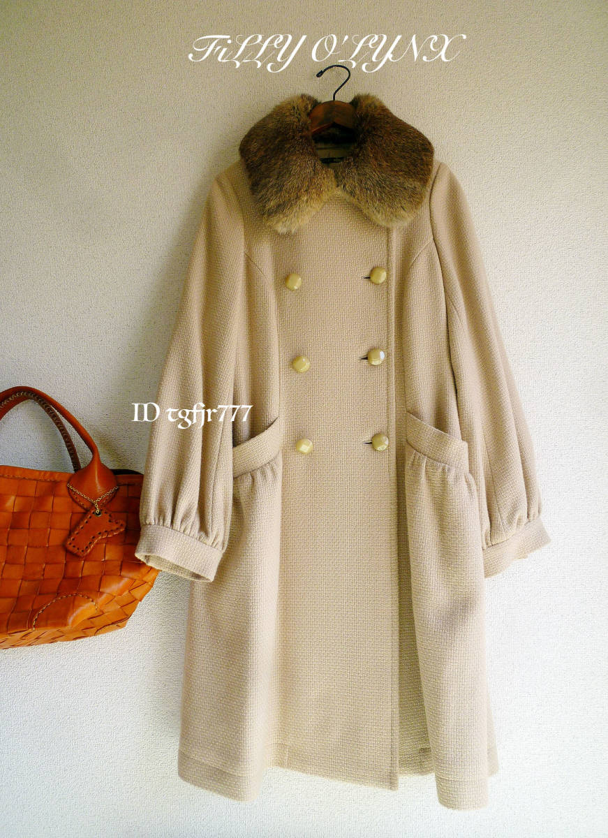 > 美品 フィリーオーリンクス FiLLY O'LYNX バルコニー アンゴラ混 ラビットファー ボリュームスリーブ ダブルブレスト コート