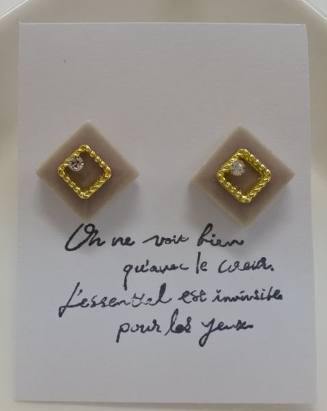 - 3 ピアス アクセサリー 手作り ハンドメイド 陶器 スクエア グレーxゴールド kgysn m1026