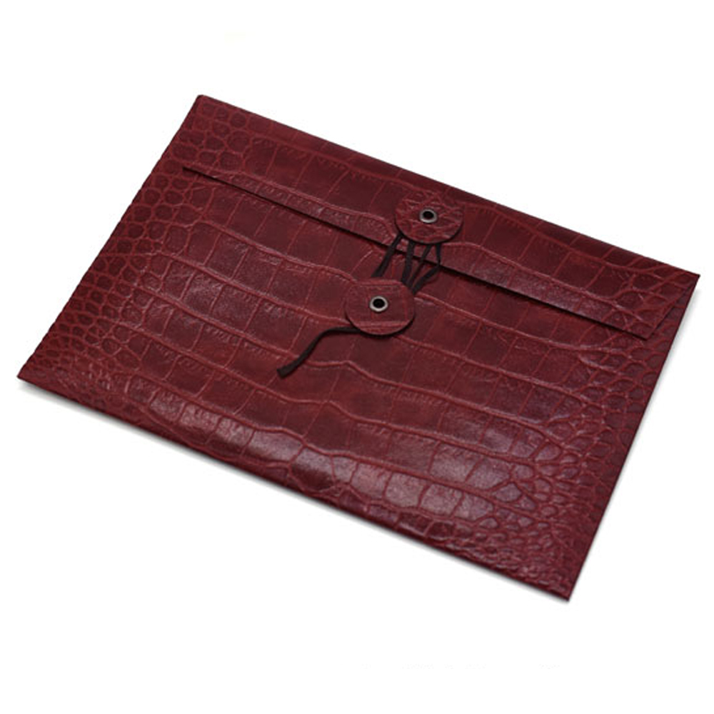 - 送料込み★お手入れいらずのリサイクルレザーで作った綴じ紐付A5サイズ封筒書類入れ★クロコ型押しボルドー
