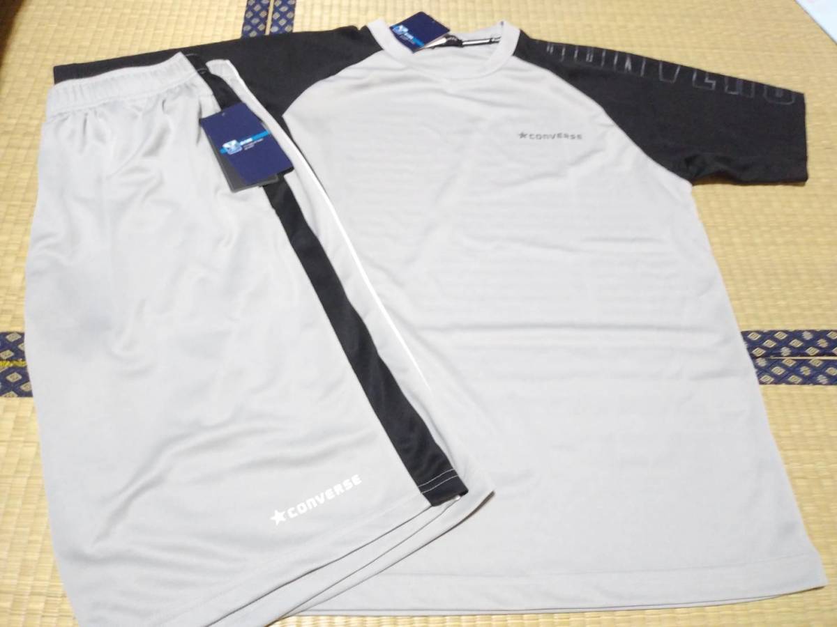 - 【新品】コンバース 速乾半袖Tシャツ&ハーフパンツ L グレー×黒