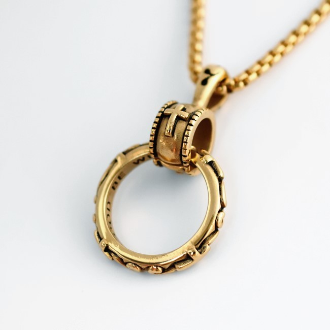 - ステンレス 十字架 唐草模様 リング 18KGF ネックレス