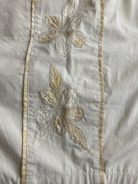 - (未使用 レア 希少) ハワイ マウイ島のデザイナー TAMARA CATZ ひざ丈スカート 花柄刺繍 ベージュ サイズM
