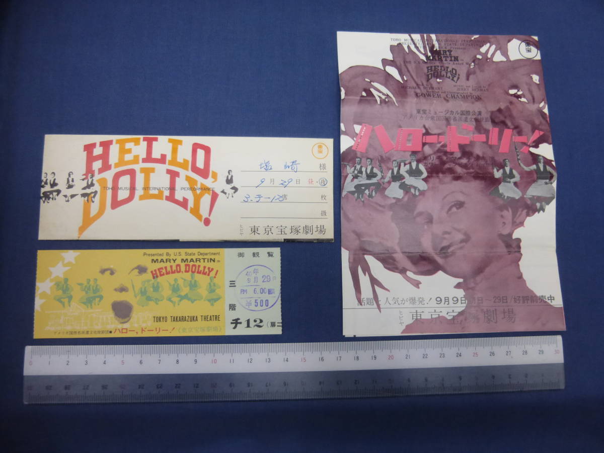 > ◆古い演劇・舞台公演 チケット半券(56)ブロードウェイ「ハロー,ドーリー!」東京宝塚劇場/メリー・マーチン/1965年/チラシと納め袋付!