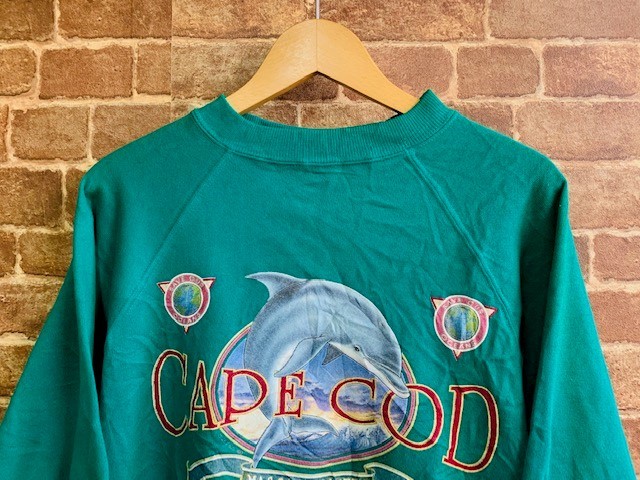 > ★表記M!1998年イルカ.Hanes.ヘインズ.緑.ユーズドスウェット.USA古着Mix.アメカジ.動物.アニマルプリント.f&e.90年代ビンテージスタイル