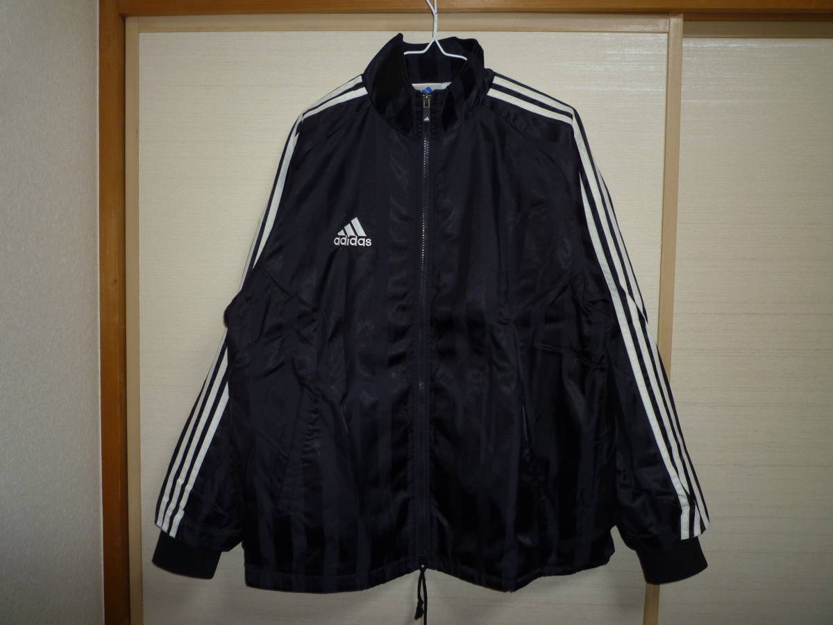 - アディダス シャドーストライプナイロンウォーマージャケット黒×白 Lサイズ