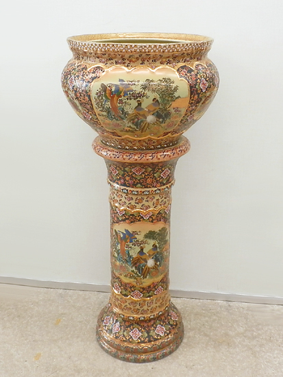 - 花台 プランターコラム形 金彩 鳳凰 陶製 花絵飾り置物 円柱 札幌市
