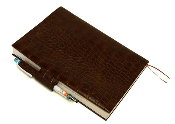 - 送料込み★お手入れいらずのリサイクルレザーブックカバー★ほぼ日カズン手帳対応★ペンホルダーと栞紐付★手帳カバー★クロコ型押ブラウン