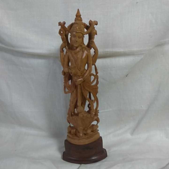 - No117 古い白檀 仏 観音 経年変化あり 高さ 30.5 巾 10.5