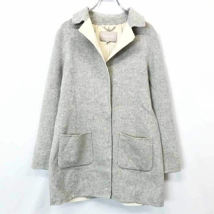 - BANANA REPUBLIC バナナリパブリック M レディース 若干薄手 チェスターコート 長袖 ウール×ナイロン メランジ グレー (アイボリーMIX)