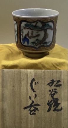 - 九谷焼 東忠雄作 窓絵風景人物 ぐい呑 共箱 西とA