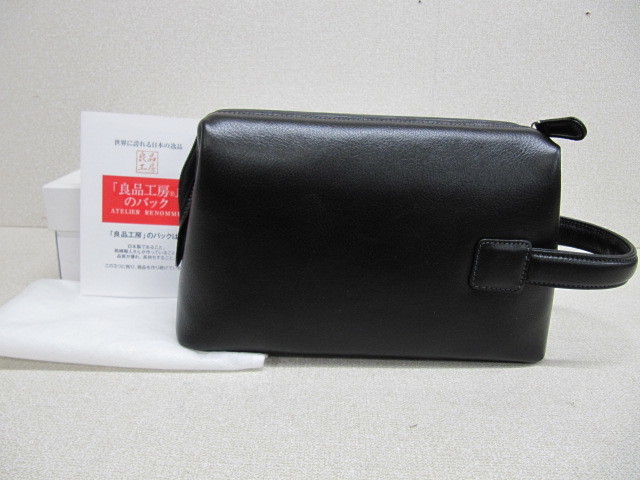 - 新品未使用 良品工房 職人手作り 本革 ダレスポーチ 黒 日本製 ポーチ