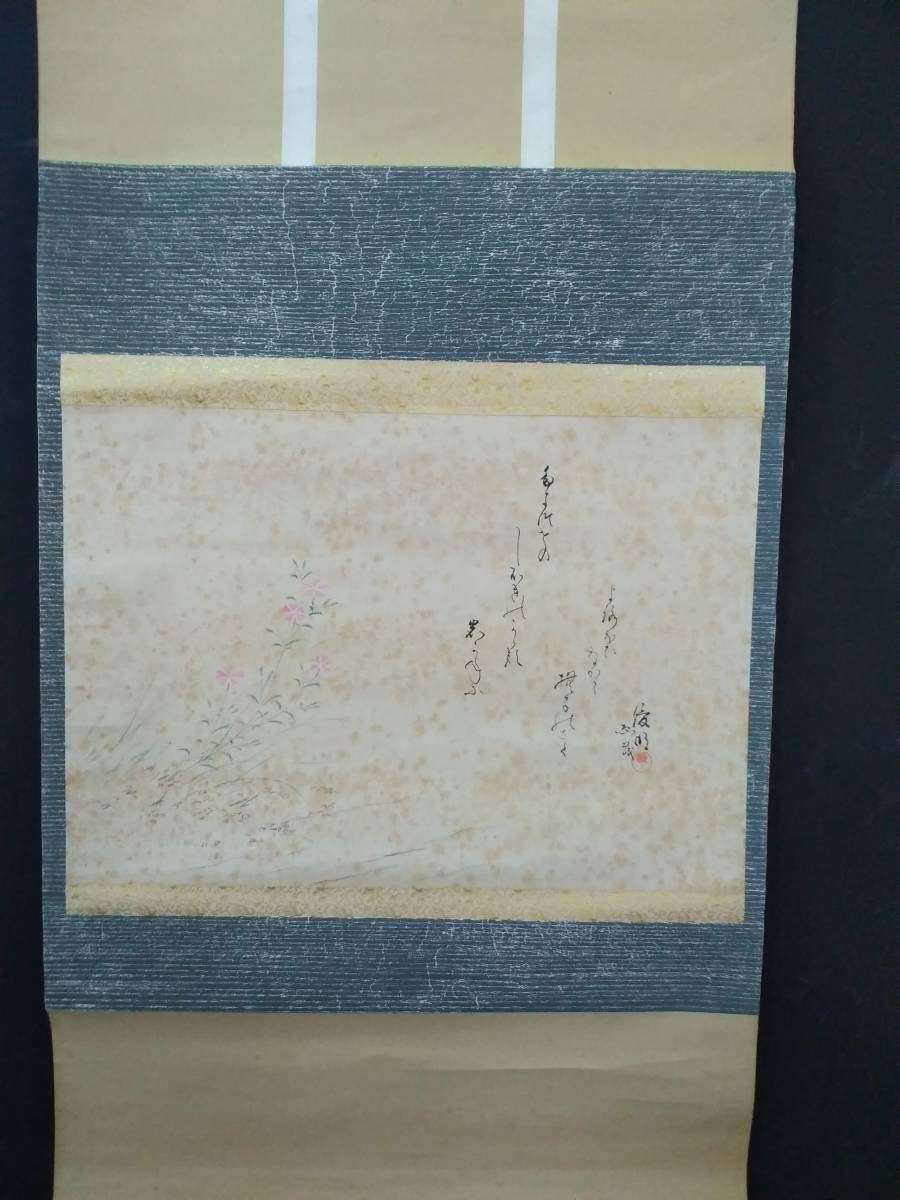- 〇 掛軸 書画 / 時代物 骨董品 古美術 花図 書 日本画 在銘 落款 芸術 アート インテリア 飾物 真作