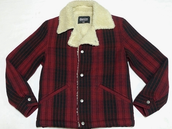 > 美品KUROクロ[WoolCheckBoaJacket]ウールチェックボアジャケット1(M)レッド\48400